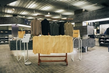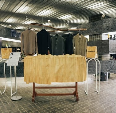 Presented as an art–fashion installation, Avianto’s bamboo forms reshape the retail space into a dialogue between garment, material, and contemporary Indonesian design.